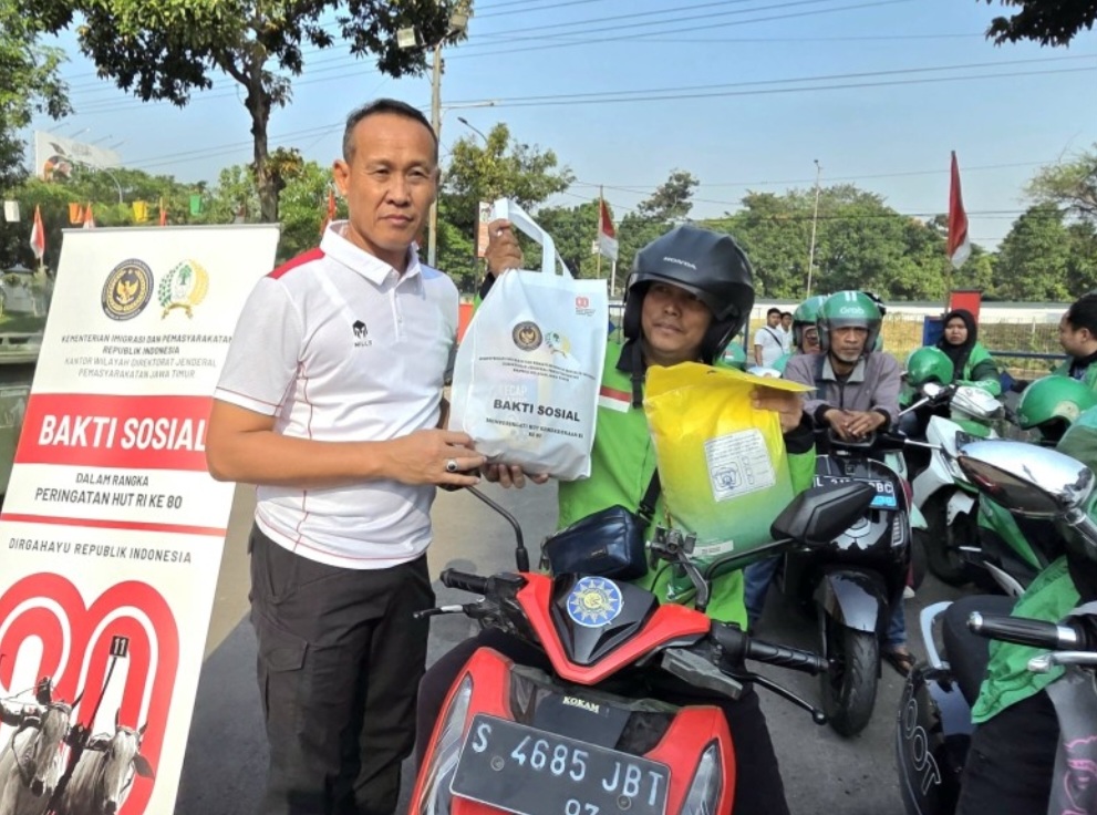 Karutan Surabaya Tomi Elyus Mendampingi Kakanwil Jawa Timur Kadiyono Dalam Kegiatan Bakti Sosial Kepada Driver Ojek Online Memperingati HUT RI Ke 80