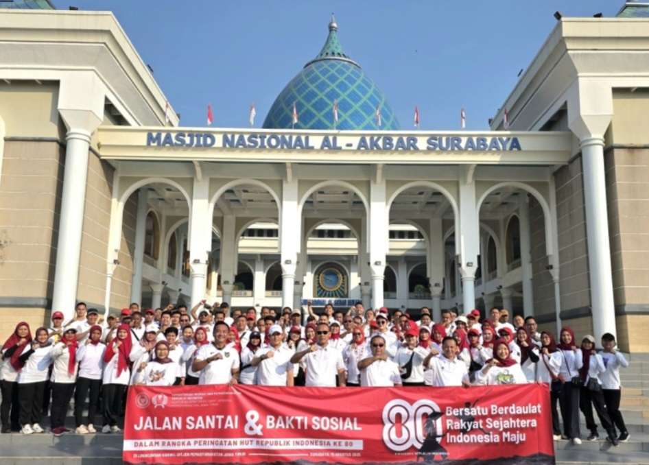 Surabaya | Suaraindependentnews.id -Semangat kemerdekaan mewarnai Kanwil Direktorat Jenderal Pemasyarakatan Jawa Timur pada Jumat, 15 Agustus 2025. Dipimpin Kakanwil Kadiyono, jajaran Pemasyarakatan Jatim menggelar jalan sehat dan bakti sosial sebagai bagian dari perayaan Hari Ulang Tahun ke-80 Republik Indonesia.