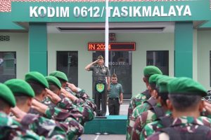 KOTA TASIKMALAYA-JABAR || suaraindependentnews.id – Kasdim 0612/Tasikmalaya Mayor Inf Deni Zenal Mutaqin, S.Sos., M.I.P, Selaku Irup dalam upacara bendera dalam rangka Memperingati Hari Sumpah Pemuda ke 96 Tahun, yang bertempat di Lapangan Upacara Makodim 0612/Tasikmalaya, Senin 28 Oktober 2024.