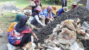 Kaum Hawa Pun Menyingsingkan Lengan Ikut Sukseskan Pengecoran Jalan TMMD Kodim 0612/Tasikmalaya