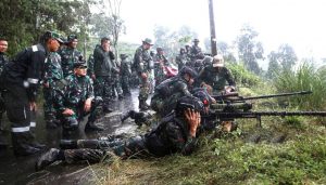 Pangdam III/Siliwangi Mayjen TNI Kunto Arief Wibowo telah mengimplementasikan hal tersebut dengan hadir di tengah – tengah ratusan prajurit Yonif 310/KK dan Yonif R 300/Bjw yang sedang melaksanakan penyiapan latihan Pratugas Statis RI – PNG di lapangan Pos Komando Latihan (Poskolat) Desa Cibokor, Kec. Cibeber, Kab. Cianjur, Jawa Barat, Jum’at (05/05/2023).