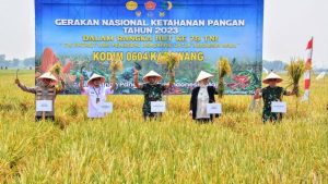 KODAM III/SLW-MABES TNI || suaraindependentnews.id – Pangdam III/Siliwangi Mayjen TNI Erwin Djatniko diwakili Kasdam III/Slw Brigjen TNI Agus Saepul mengikuti Panen Raya secara serentak melalui Vicon yang terpusat di Taman Pancasila Desa Wanajaya Kecamatan Cibitung Kabupaten Bekasi oleh Wakil Presiden RI dan Panglima TNI yang didampingi Kapolri Jenderal Pol Listyo Sigit Prabowo dalam rangka Gerakan Nasional Ketahanan Pangan Tahun 2023, Rabu 1 November 2023.