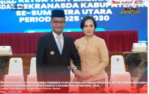 Ketua Tim Penggerak Pemberdayaan dan Kesejahteraan Keluarga (TP-PKK) Kabupaten Nias, Ny. Maria Ratna Indah Yaatulo Gulo secara resmi dilantik oleh Ketua TP-PKK Sumatera Utara, Ny. Kahiyang Ayu Bobby Nasution. Kamis (13/03/2025).