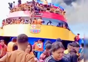 Makasar || Suaraindependentmews.id – KM Gregorius Barcelona V mengalami kebakaran di Perairan Sulawesi Utara. Penumpang pun panik dan berusaha menyelamatkan diri dengan melompat ke laut.