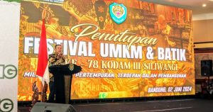 BANDUNG-JABAR || suaraindependentnews.id – Pangdam III/Siliwangi Mayjen TNI Mohammad Fadjar, MPICT., didampingi Ketua Persit Kartika Chandra Kirana Daerah III/Slw Ny. Ira M. Fadjar menutup Festival UMKM dan Batik dalam rangka HUT ke-78 Kodam III/Slw di Graha Manggala Siliwangi Jalan Aceh No. 66 Kota Bandung, Minggu 2 Juni 2024.