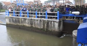 “Kami bersama masyarakat membersihkan saluran pintu air Irigasi Sungai Cimulu Kelurahan Tawangsari Kecamatan Tawang Kota Tasikmalaya”, ungkap Kasdim 0612/Tsm.