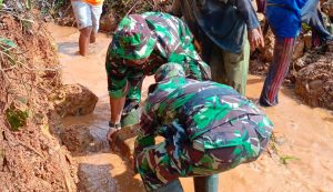 Tidak lupa saat mengerjakan pembersihan material longsor, Danramil mengingatkan agar faktor keamanan tetap diperhatikan. Sebab tanah didaerah ini mudah longsor. Mengingat saat ini hujan masih sering turun dengan intensitas tinggi, sedangan kondisi wilayah merupakan daerah perbukitan sehingga mudah sekali terjadi longsor.