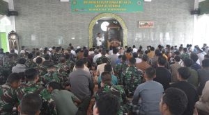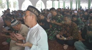 Acara do’a bersama, dilaksanakan setelah sholat Jum’at berjamaah, dipimpin oleh Sertu Solihin (anggota Bintalrem 062/Tn) yang diikuti jemaah sholat Jum’at ± 350 orang.