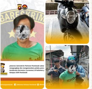 “Saat ini pelaku beserta barang bukti sepeda motor Honda Scoopy merah dengan nomor polisi KB 6782 OL yang digunakan sebagai sarana oleh pelaku telah diamankan di Mapolresta Pontianak untuk proses penyidikan lebih lanjut, ” pungkas Wawan.