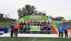 Pada kesempatan tersebut diserahkan piala, piagam dan uang pembinaan kepada Tim Juara Turnamen Sepak Bola Putri dalam rangka HUT ke 79 TNI tahun 2024 kerjasama dengan Djarum Foundation pada MilkLife Soccer Challenge. (Pendam III/[email protected]).