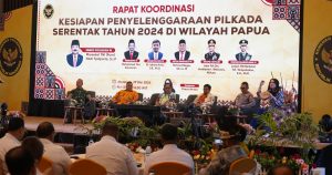Demi terciptanya situasi yang aman dan kondusif selama penyelenggaraan Tahapan Pilkada Serentak 2024, kegiatan ini menghadirkan berbagai elemen stakeholder yang ada di seluruh wilayah Papua dan juga dari Pusat, baik unsur pemerintah, TNI/Polri, penyelenggara pemilu, peserta pemilu, hingga tokoh masyarakat.