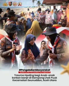 Mahasiswa STIK Angkatan 83 Laksanakan Trauma Healing bagi Anak-Anak Terdampak Banjir di Desa Seunuddon Aceh Utara