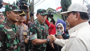 Menhan RI Prabowo Subianto beserta rombongan disambut Danrem 062/TN Kolonel Inf Asep Sukarna, S. Sos., S.I.P.,M.M., Dandim 0609/Cimahi Letkol Inf Hary Novana Andriyas dan Kapolres Cimahi AKBP Aldi Subartono, S.H., S.I.K, M.H. CPHR.,
