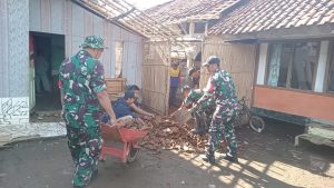 Tak menunggu lama, Selasa pagi (22/4), prajurit TNI dari Koramil 1004 Tanjungsari langsung diterjunkan ke lokasi untuk melaksanakan aksi tanggap darurat. Dipimoin Kapten Inf Agus Hermawan, para prajurit terdiri dari Babinsa bahu-membahu bersama warga membersihkan puing-puing sisa bencana, memperbaiki secara darurat rumah-rumah warga yang terdampak, dan turut serta membereskan atap madrasah yang rusak di lingkungan Ponpes Al-Ba’ats.