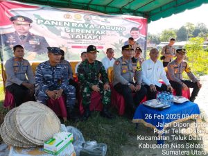 Pada acara panen raya jagung serentak tahap-1 turut dihadiri dari Kapolres Nias Selatan (AKBP Fery Mauliyana SIK), Letda Laut (K) Sukma Putera, Sekda Nisel (lr. Ikhtiar Duha MM), Kapolsek Teluk dalam (AKP Zulkarnaen SH), Kadis Pertanian Kab. Nias Selatan (Ir. Norododo Sarumaha).