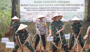 KABUPATEN SUKABUMI-JABAR || suaraindependentnews.id – Pangdam III/Siliwangi Mayjen TNI Mohammad Fadjar, MPICT., bersama Kapolda Jabar Irjen Pol Dr. Akhmad Wiyagus, S.IK., M.Si., mendampingi Kasad Jenderal TNI Maruli Simanjuntak, M.Sc., bersama Menteri Pertanian RI Amran Sulaiman melakukan Panen Raya jagung dan singkong serta penanaman cabai di Lahan Ketahanan Pangan Kostrad Desa Neglasari, Kecamatan Ciemas, Kabupaten Sukabumi, Jawa Barat, Selasa 4 Juni 2024.