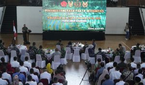 BANDUNG-JABAR || suaraindependentnews.id – Pangdam III/Siliwangi Mayjen TNI Mohammad Fadjar, MPICT., memimpin acara Penandatanganan Pakta Integritas Calon Taruna (Catar) Akademi TNI Tahun 2024 Panselinda Bandung, bertempat di GOR Saparua Jalan Banda No. 28 Bandung, Minggu 28 April 2024.