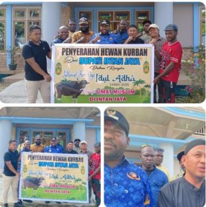 Dalam momentum perayaan Iduladha 1446 Hijriyah, Aner Maisini, S. Kom, S.H, M.H, Bupati Kabupaten Intan Jaya, Papua Tengah, berbagi kebahagiaan dengan berencana membangun masjid di Kota Yokatapa dan penyerahan dua ekor hewan kurban sapi untuk umat muslim Intan Jaya, pada Kamis (5/6/2025).