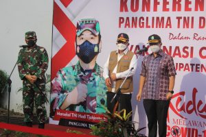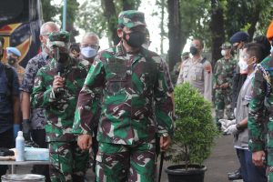 Kudus,Suaraindependentnews.id- Tindak lanjut upaya pencegahan dan penanganan Covid-19 di wilayah Kudus Panglima TNI Marsekal Hadi Tjahjanto dan Kapolri Jenderal Listyo Sigit Prabowo serta Menteri Kesehatan Budi Gunadi Sadikin meninjau pelaksanaan vaksinasi di Pabrik Sukuntex Kudus dan Pura Terban Kudus, Kamis (17/6/2021).