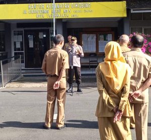 POLSEK CIHIDEUNG – POLRES TASIKMALAYA KOTA – POLDA JABAR || suaraindependentnews.id – Seluruh Instansi se Kecamatan Cibideung melaksanakan apel gabungan Panit Binmas Polsek Cihideung IPDA Saptaji turut hadir dalam kegiatan tersebut, Senin, 9 Januari 2023.