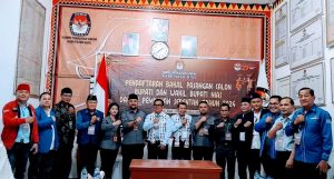 Saat tiba di Kantor KPU Kabupaten Nias, terlihat turut hadir pimpinan dan pengurus partai politik pengusung bersama simpatisan pendukung, di antaranya Partai Demokrat, NasDem, PAN, PSI, PBB dan Partai Bulan Bintang dan anggota DPRD Provinsi Berkat Laoli terpilih 2024-2029 dari Partai NasDem bersama Koordinator Wilayah Partai NasDem Kepulauan Nias, Mayjen TNI (Purn) Drs. Christian Zebua, MM.