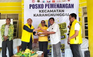 Selain itu, secara resmi Iwan Saputra meresmikan Posko Pemenangan di Karangnunggal dengan secara simbolis memberikan nasi tumpeng kepada Ketua DPD Partai GOLKAR Kabupaten Tasikmalaya dan Ketua Korcam Karangnunggal.