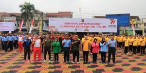 POLRES TASIKMALAYA KOTA-POLDA JABAR || suaraindependentnews.id – Sinergitas TNI-POLRI, Polres Tasikmalaya Kota dalam rangka menyemarakkan hari ulang tahun Bhayangkara ke-77, Polres Tasikmalaya Kota menggelar olahraga bersama di lapangan Mapolres Tasikmalaya Kota, Jumat 23 Juni 2023.