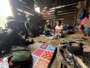 Distrik Kelila || Suaraindependentnews.id –Personil Satgas Pamtas Kewilayahan Yonif 521/DY Pos Kelila melaksanakan memeriksa kesehatan warga yang sedang sakit secara gratis di Distrik Kelila, Mamberamo Tengah, Papua Pegunungan (10/12/2025).