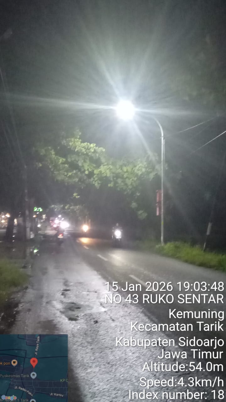 1. Pemasangan 43 titik PJU baru di sepanjang Jalan Raya Tarik yang menjadi urat nadi transportasi warga.