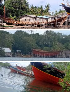 Dilokasi tempat pembuatan kapal tersebut, banyak kelihatan temuan bahan untuk membuat Kapal kayu, Papan panjang, kapal yang sedang dikerjakan dengan berukuran besar muatan barang Puluhan Ton dengan ukuran kapal lebar 5 Meter dan panjang 20 lebih senti Meter.