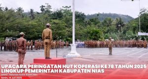 Pemerintah Kabupaten Nias Gelar Upacara Peringatan Hari Koperasi ke-78 Tahun 2025, bertempat di Lapangan Upacara Kantor Bupati Nias. Senin, 14 Juli 2025.