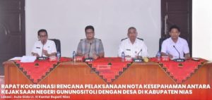 Diketahui, Penandatangan Nota Kesepahaman (MoU) antara Kejaksaan Negeri Gunungsitoli dengan Desa di Wilayah Kabupaten Nias akan dilaksanakan pada saat Rapat Koordinasi Pemerintah Desa.
