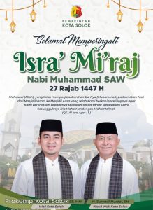 Kota Solok, Suaraindependent.id — Wali Kota Solok, Dr.Ramadhani Kirana Putra, SE, MM bersama Wakil Wali Kota Solok Suryadi Nurdal, SH bersama masyarakat Kota Solok menyambut hari besar Peringatan Isra Mi’raj Nabi Muhammad SAW 1447 Hijriah yang jatuh pada hari Jumat, 16 Januari 2026.