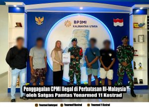 Nunukan | suaraindependentnews.id , 28 April 2025 – Di sekitar patok perbatasan RI-Malaysia Nomor A663, Desa Sekaduyan Taka, Kecamatan Seimanggaris, Kabupaten Nunukan, Kalimantan Utara, telah dilakukan penggagalan pengiriman tiga orang Calon Pekerja Migran Indonesia (CPMI) illegal oleh personel Pos Gabungan Bersama (Gabma) Simanggaris, Satgas Pamtas Yonarmed 11 Kostrad.