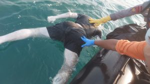Sat Polairud bersama Tim Sar dan nelayan yang masih melakukan pencarian berhasil menemukan korban di sekitar perairan lurusan Pasarangan.