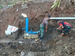 Kolonel Czi Rielman menjelaskan, proses pemasangan Pompa Hydram diawali dengan penyiapan bak retensi dengan membuat tanggul memanfaatkan aliran air yang ada di lokasi.