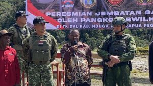 Nduga || Suaraindependentnews.id Papua — Panglima Komando Gabungan Wilayah Pertahanan III (Pangkogabwilhan III), Letjen TNI Bambang Trisnohadi, secara resmi meresmikan Jembatan Gantung Kampung (KP) Dal di Distrik Dal, Kabupaten Nduga, Papua. Pembangunan jembatan ini merupakan wujud nyata kehadiran negara dalam meningkatkan konektivitas dan kesejahteraan masyarakat di wilayah terdepan Indonesia. (22 Oktober 2025).