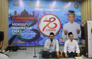 JAKARTA || suaraindependentnews.id – Divisi Humas Polri menyelenggarakan kegiatan rohani dengan Khataman Al-Quran yang digelar kemarin Minggu (30/6/24) hingga Senin (1/7/24). Kegiatan ini diselenggarakan dalam rangka HUT Bhayangkara ke-78 tahun 2024.