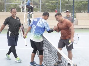Olahraga tenis lapangan yang dilaksanakan di Sampang Sport Center (SSC) juga diikuti perwira dan bintara dari Polres Sampang dan Kodim 0828/Sampang.