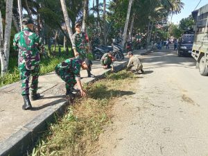 Dalam rangka menyambut pelaksanaan EVENT NIAS PRO 2025 di Desa Sorake Kecamatan Luahagundre Kabupaten Nias Selatan Personil Koramil-12/Teluk Dalam turut hadir untuk melaksanakan Gotong Royong pembersihan pinggir jalan umum DPP Danramil-12/Teluk Dalam Mayor INF Yus Waruwu S.E. Kamis (05/06/2025).