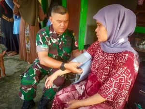 Dandim 0619/PWK Letkol Inf Ardiansyah yang akrab disapa Raja Aibon Kogila melalui Serka Syamsul Ma’arif mengatakan, selain kegiatan fisik yang menjadi program utama TMMD juga melaksanakan kegiatan nonfisik bagi masyarakat, salah satunya dengan memberikan pelayanan pengobatan gratis secara Door to Door.