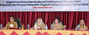 Pjs. Bupati Nias, Ir. Yuliani Siregar, M.AP hadiri Rapat Koordinasi (Rakor) dan Evaluasi Pelaksanaan Deteksi Dini, Preventif dan Respon Penyakit Tingkat Kabupaten Nias, bertempat di Ruang Training Centre UPTD RSUD dr. M. Thomsen Nias. Selasa (22/10/2024).
