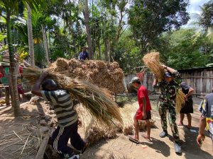 Naibenu | suaraindependentmews.id – 26 Agustus 2025 – Dalam upaya menjaga warisan budaya dan mempererat hubungan dengan masyarakat, tujuh personel Pos Manamas dari Satgas Pamtas RI-RDTL Sektor Barat Yonarhanud 15/DBY, yang dipimpin oleh Lettu Arh Agung Setiawan, melaksanakan kegiatan karya bakti perbaikan atap rumah adat milik Bapak Maxi Keno yang berusia 60 tahun di Dusun Bobkase, Desa Manamas, Kecamatan Naibenu. (25/8).