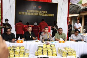 Pengungkapan ini disampaikan dalam konferensi pers di Komplek Tasbih, Medan, Sabtu (17/5/2025), dipimpin Direktur Resnarkoba Polda Sumut Kombes Pol Jean Calvijn Simanjuntak bersama Kabid Humas Kombes Pol Ferry Walintukan dan Wadirresnarkoba.
