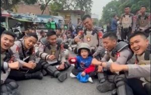 “Hatur nuhun Pak Polisi”, celetuk anak kecil tersebut sambil memberi hormat kepada semua polisi yang berfoto dengannya.