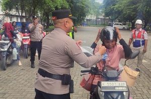 Dalam pelaksanaannya, petugas tidak hanya memberikan imbauan dan edukasi tentang pentingnya keselamatan berlalu lintas, tetapi juga secara langsung membagikan helm keselamatan berstandar SNI kepada pedagang yang kedapatan mengendarai sepeda motor tanpa menggunakan helm