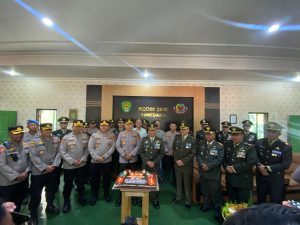 Dalam kegiatan tersebut, Polres Sumedang membawa kue ulang tahun dan nasi tumpeng sebagai simbol ucapan selamat dan bentuk apresiasi terhadap peran TNI dalam menjaga keutuhan NKRI.