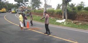 Polsek Cibatu Polres Garut Cek TKP Kecelakaan Yang Mengakibatkan Pelajar Meregang Nyawa