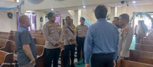 Dalam kunjungan tersebut, Kapolsek beserta jajaran memberikan perhatian khusus terhadap kesiapan pengamanan menjelang pelaksanaan misa Natal yang akan digelar secara tatap muka.