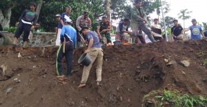 Polsek Malangbong bersama warga bahu membahu memberisihkan bekas material tanah longsor dan akhirnya material tanah longsor dapat dibersihkan serta saluran air berfungsi normal kembali.